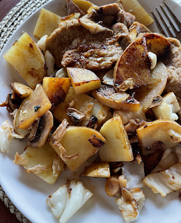 W and I eat breakfast out on our first date morning since coming home. He walks partway and waits at the restaurant while I complete the loop. When he heads home, I do 2 more loops to match the missed hike. Total is under 4 miles / 8000-ish steps, with easier hills. I'll get 2-3000 more steps during the day, so that's enough for now.